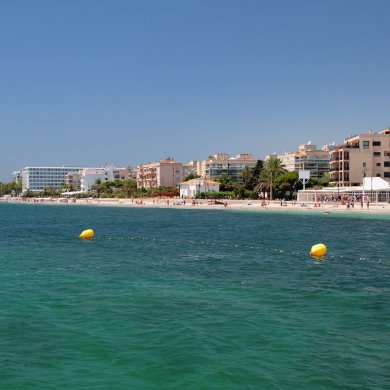 Un parque acuático, boleras, interminables hileras de bares y cafeterías, el mundialmente famoso club Bora-Bora y un sinfín de entretenimientos, sin los cuales no se puede dar un paso por aquí, atraen a huéspedes de toda la zona. Playa den Bossa es el corazón de la escena de discotecas, música y baile de Ibiza. De hecho, cuando la gente habla del espíritu de Ibiza, suele pensar en este destino de vacaciones. Aquí podrá sumergirse en el bullicio de las vacaciones juveniles, ver a muchos famosos, escuchar actuaciones y conciertos de músicos de rock y también de otros estilos musicales. Y si se esfuerza, incluso puede encontrar lugares tranquilos y acogedores.